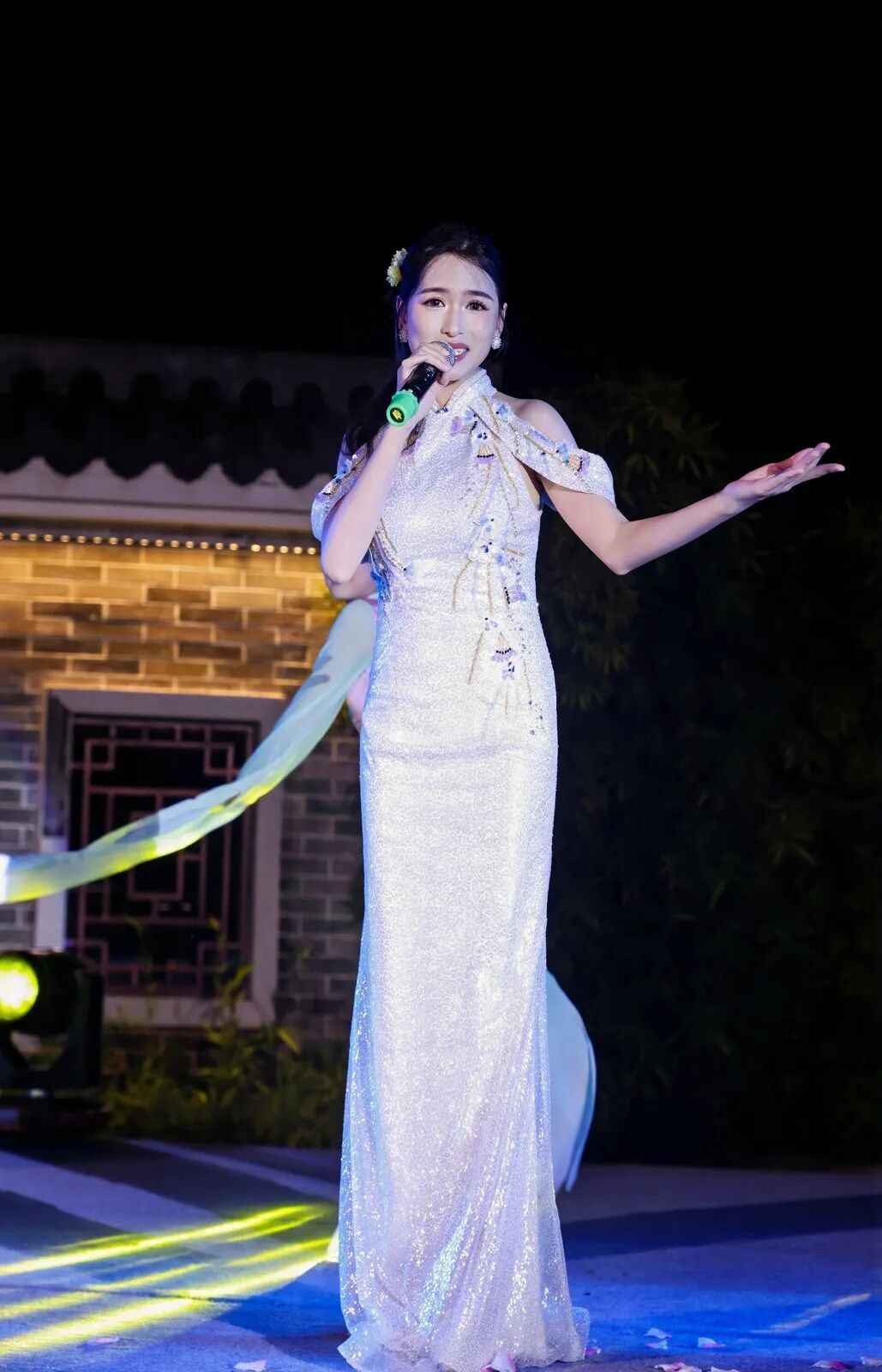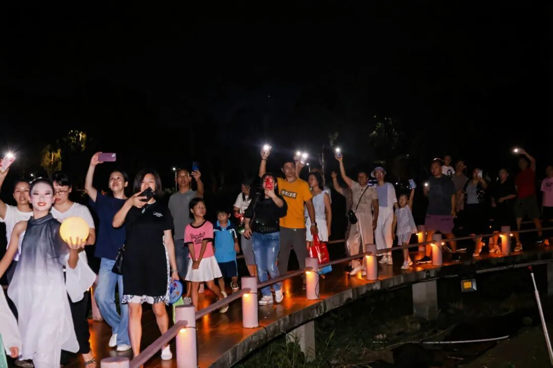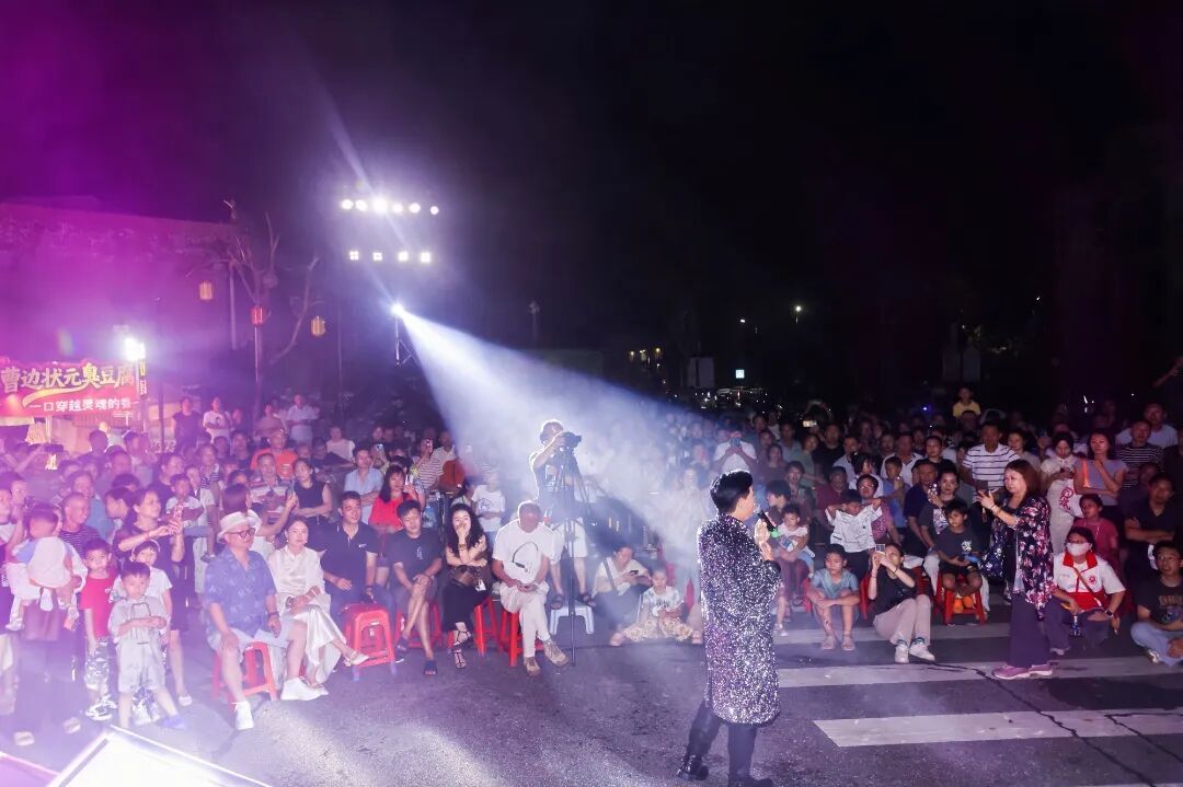 晚会以“月”为线索,设“月升曹边”“月映乡愁”“月宴欢歌”“月圆情浓”四大篇章,十余组表演者轮番登台。《彩云追月》的舞姿与月色交映,《弯弯的月亮》唱出对故土的眷恋,《但愿人长久》将团圆期盼融入旋律,《荷塘月色》《十五的月亮》等经典曲目接连上演,台下观众或跟唱、或拍照,古村夜空回荡着欢笑声与歌声。