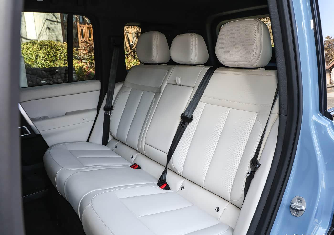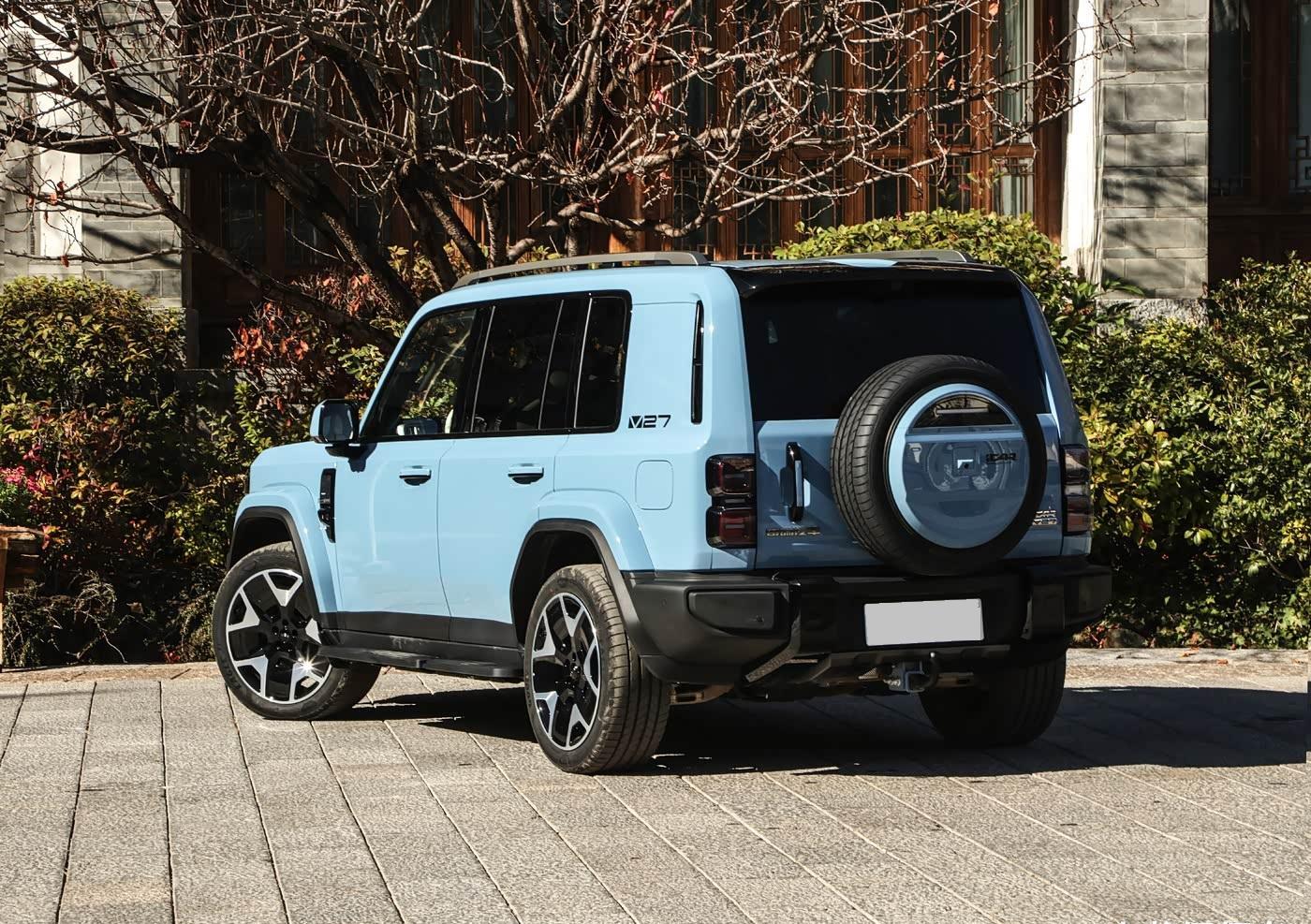 新车外观采用“方盒子”造型,外凸的前后保险杠、粗壮的行李架、后挂备胎、侧爬架等设计凸显了整车的“越野感”,外观硬朗霸气的同时也不乏一定的时尚气息,想必这样的外观设计是比较能够符合当下主流审美的。
