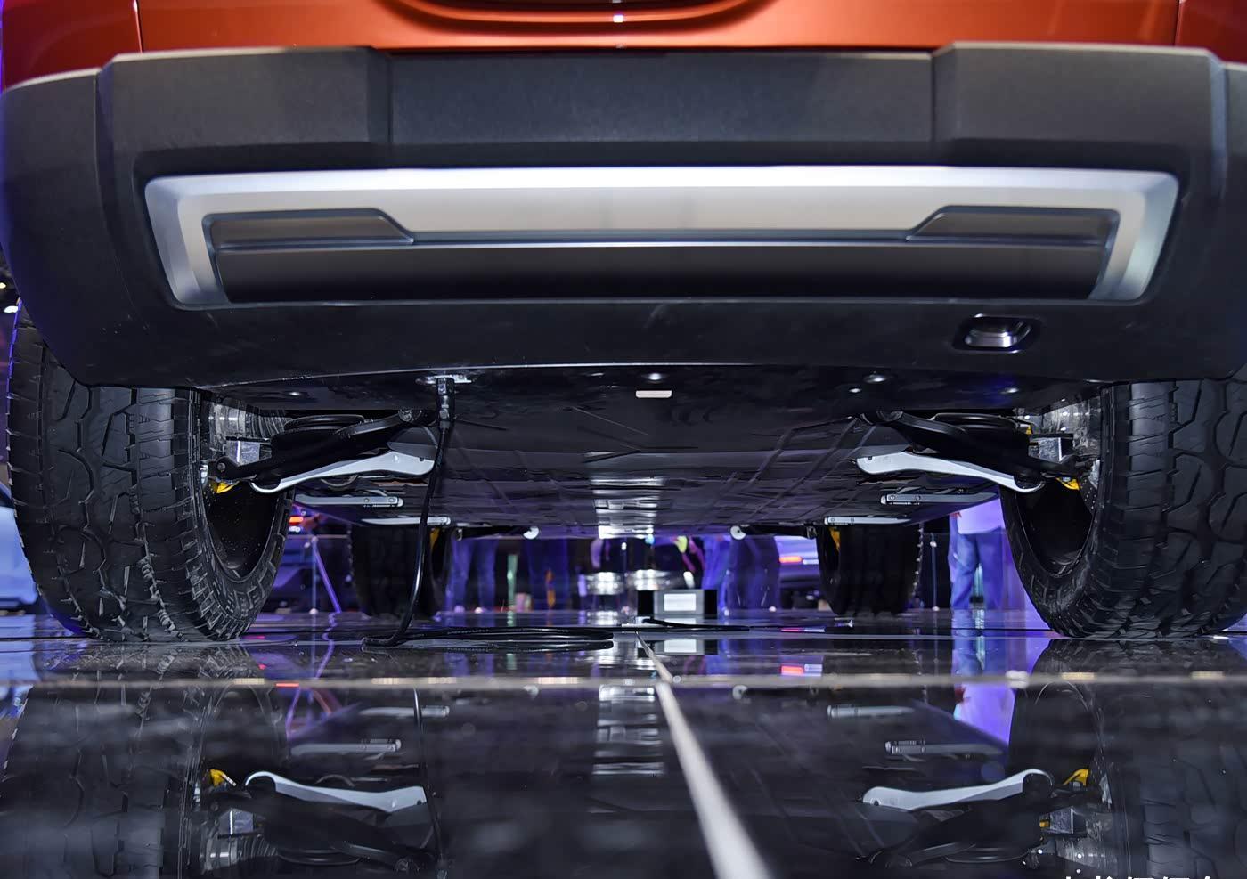 另外,新车还具备蟹行模式,原地掉头、爆胎行驶、障碍物连续自动避让技术等,涉水深度达到了800mm。从新车的底盘图片来看,吉利银河战舰在底盘部分用到了不少铝合金件,减轻簧下质量的同时还提升了悬架的强度。