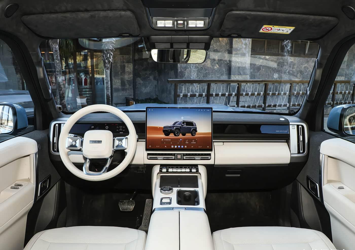进入到车内,迎面而来的是奇瑞iCAR V27简约时尚的内饰设计,同时由于新车在内饰中用到了大面积皮革材质的包裹,所以内饰的档次感也呈现得比较足;此外,新车在中控位置配备了两块大尺寸的屏幕,因此内饰也有着一定的科技感。动力系统部分,新车将采用1.5T增程器+电机的动力组合,纯电续航里程将超过200km,而综合续航则将超过1200km。
