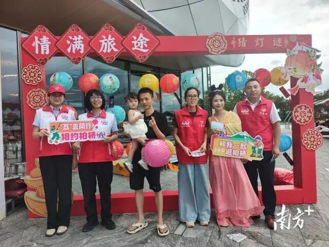 西区服务楼门前,火红的灯谜纸条随风轻扬,交织成一片喜庆的风景。“这个谜底我知道,是‘团圆’!”一个小男孩兴奋地扯着妈妈的衣角,清脆的童声引来周围旅客会心的微笑。猜中谜底的旅客,不仅赢得了精巧别致的中秋灯笼,更在专属卡片上盖上了第一枚“点赞”纪念章,脸上洋溢着惊喜与自豪。
